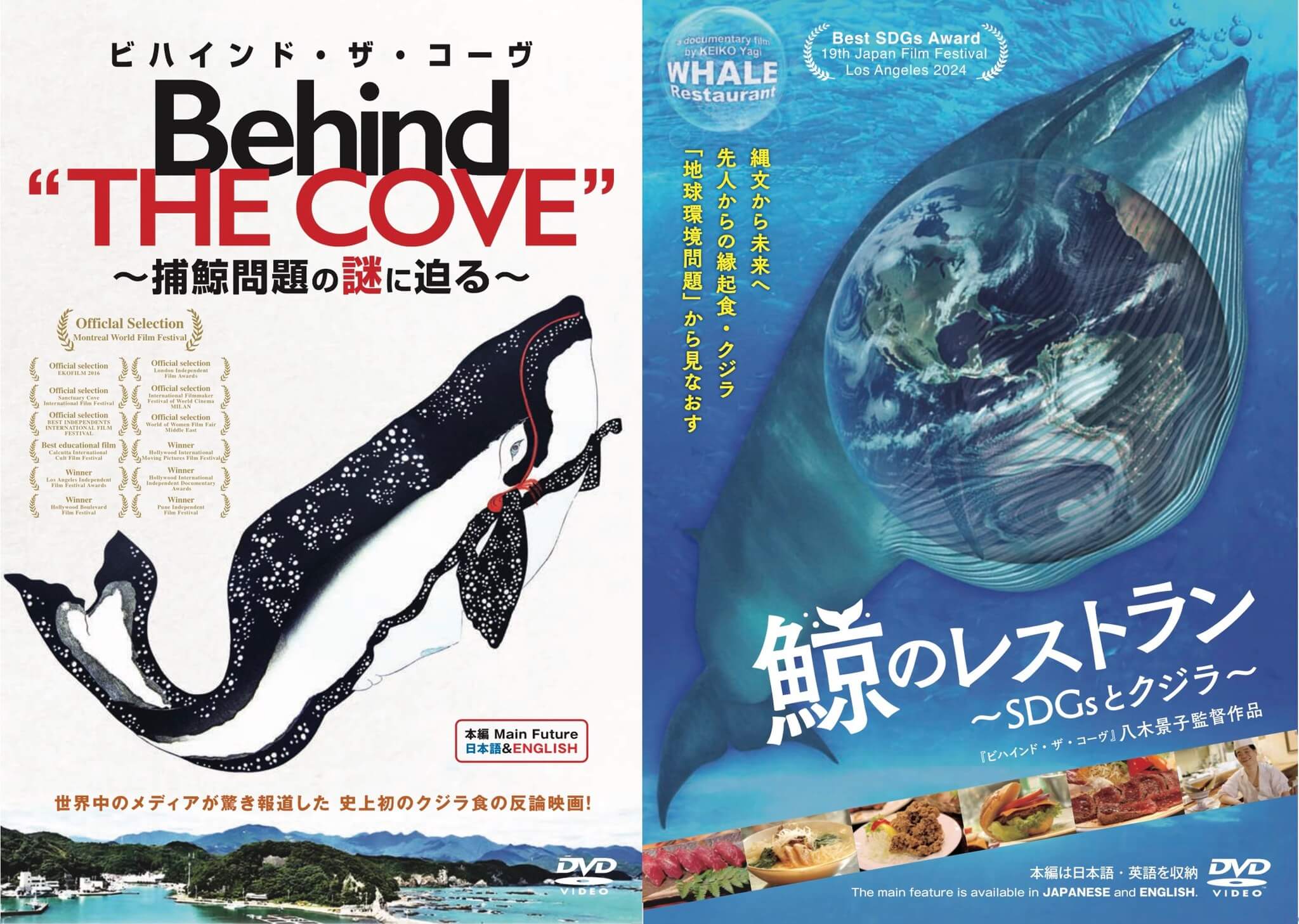 DVDは、『Behind THE COVE』『鯨のレストラン』2作品とも日本語に加え、英語版も付いたバイリンガル版、さらに特典映像&特別浮世絵が各種違うデザインが収納され、それぞれアマゾンで入手できるようになっています。